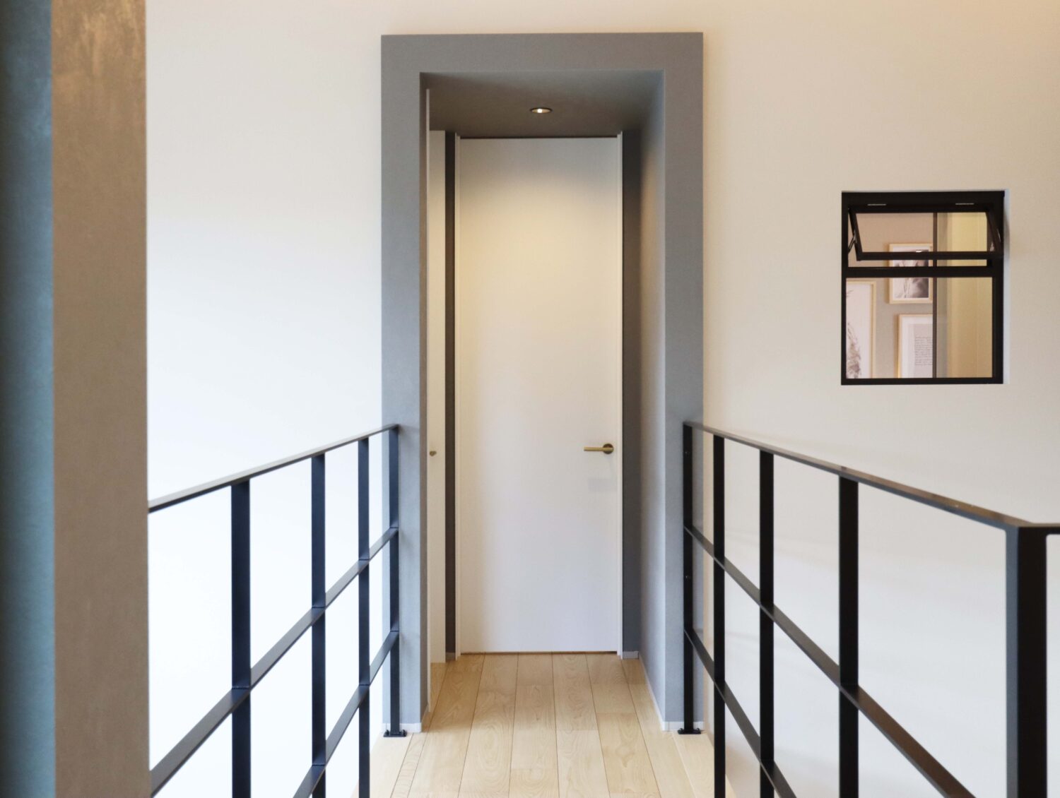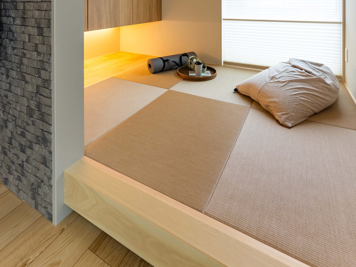 ワイド階段を上がり「橋」を渡って寝室へ。とびきりのジャパンディ空間が待っています。