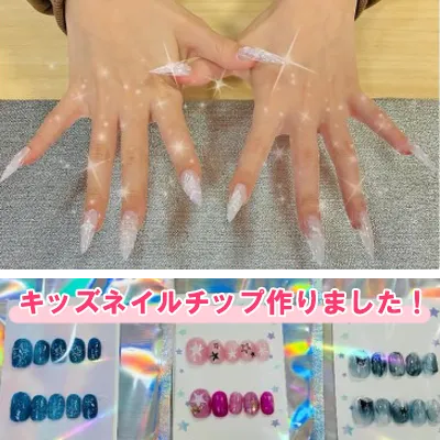 チップは子供~大人用キッズネイルwsあり。チップはサイズ合わせできその場で着ける事も可能