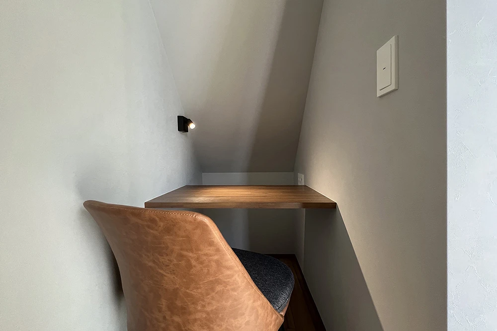 階段下を有効利用して書斎コーナーとしました。広すぎず無駄のないスペースなので集中力バツグン!リモートワークにも最適です。