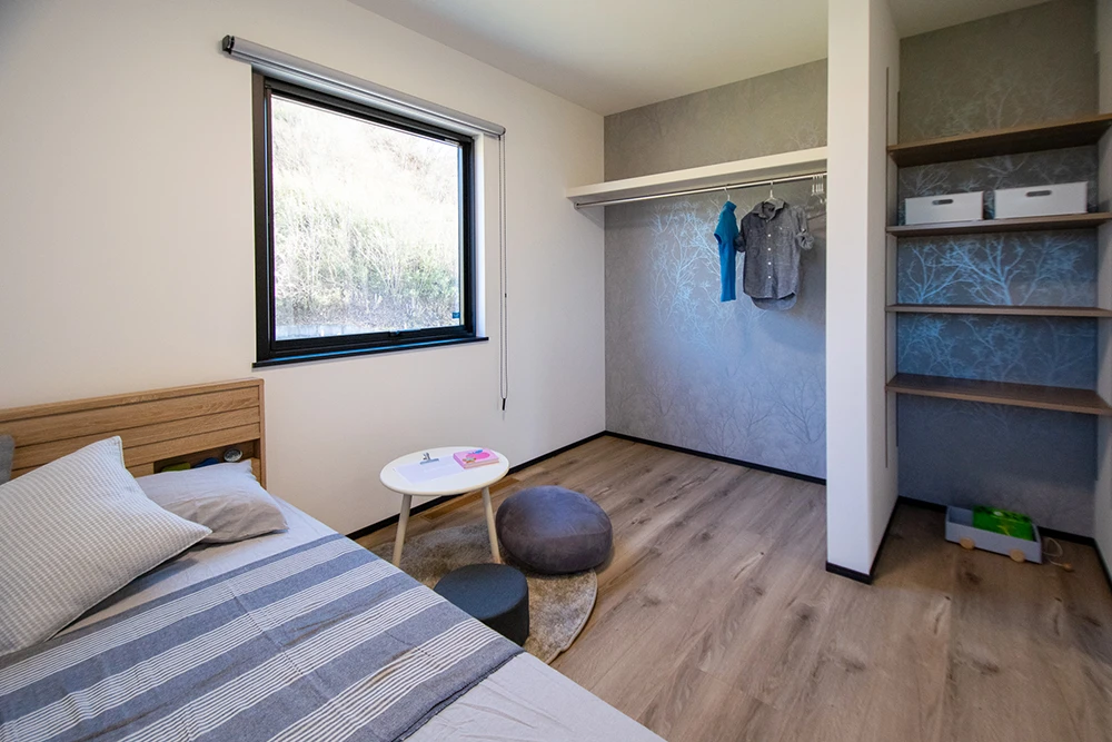 扉のないオープンクローゼットで広さを確保。開放感があり、広々とした印象を受け、子ども部屋を無駄なく有効に使えます。