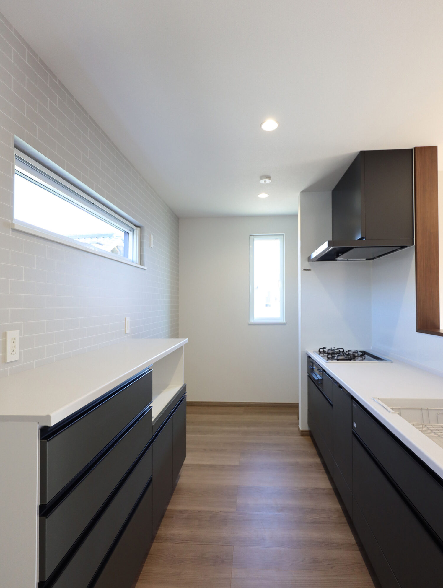 洗練された雰囲気のキッチン。陽の光もたっぷりと取り込みます。