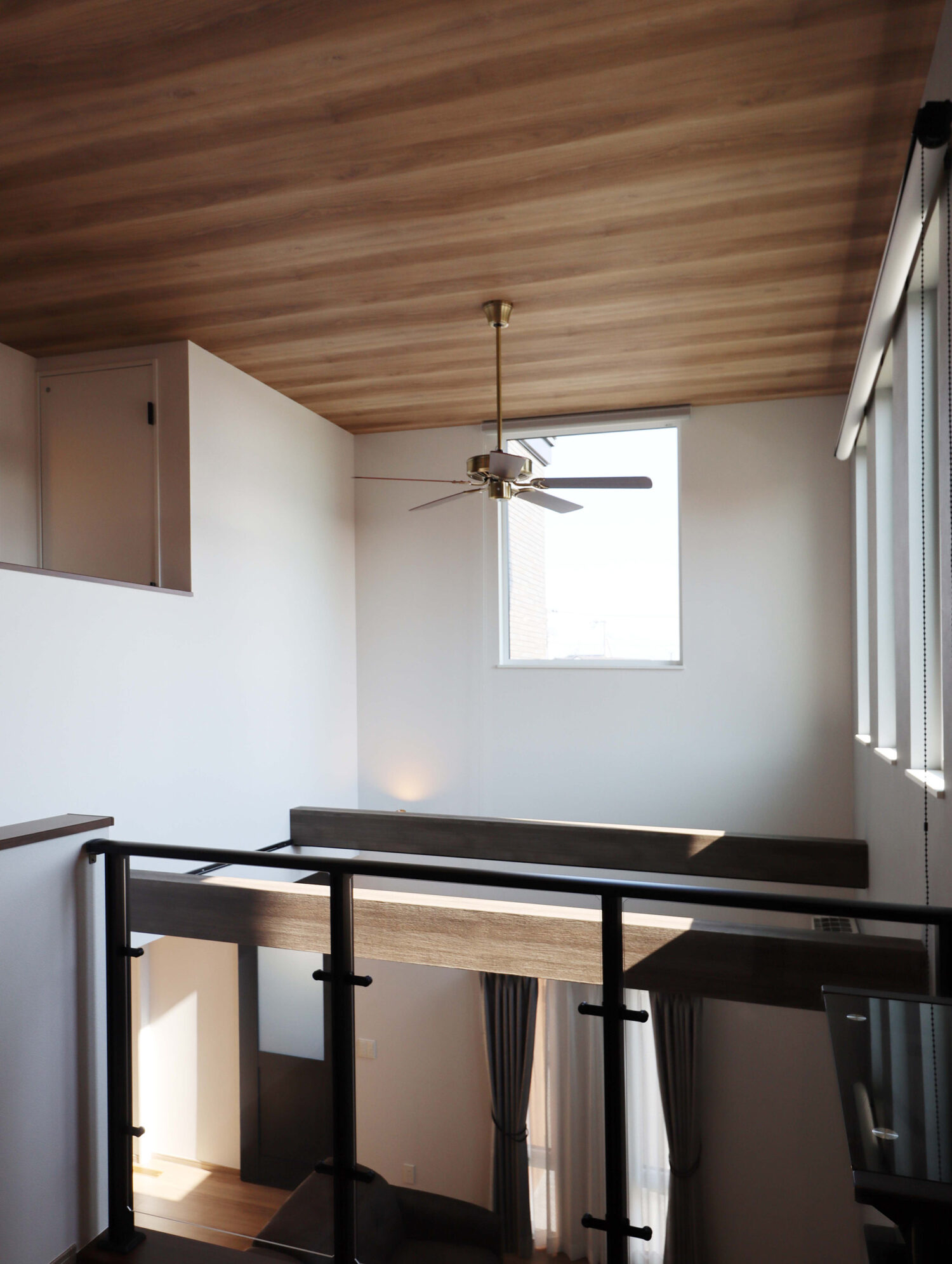 吹き抜けを通して上下階が緩やかにつながり、光と風が家全体を包み込む設計。