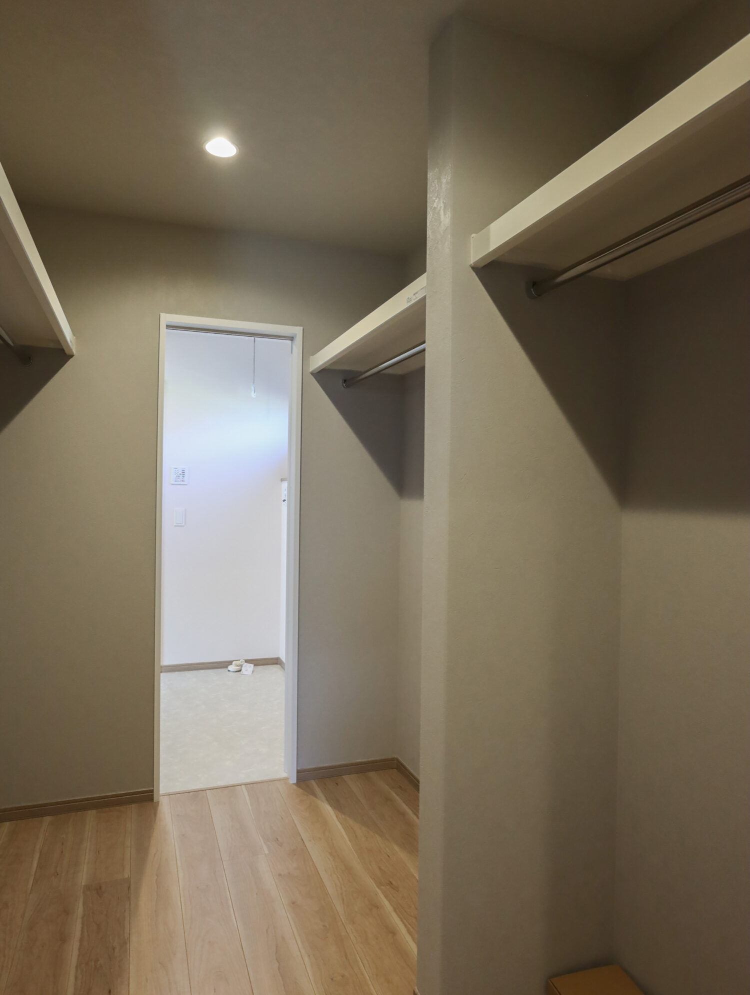 玄関、脱衣所どちらからも行ける、便利で広々としたWIC。