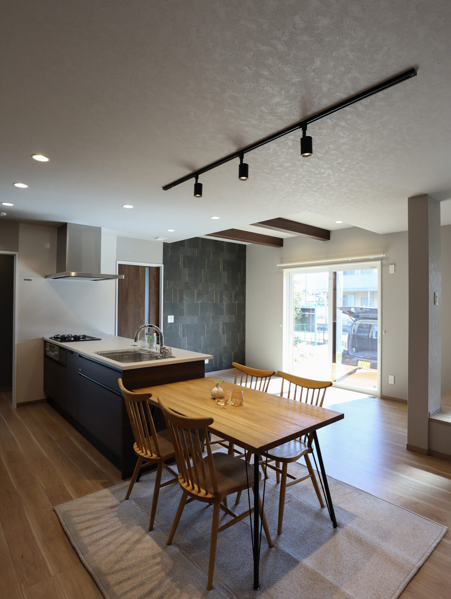 横並びのダイニングで、くつろぎと食事の時間がゆるやかに続くリビング。
