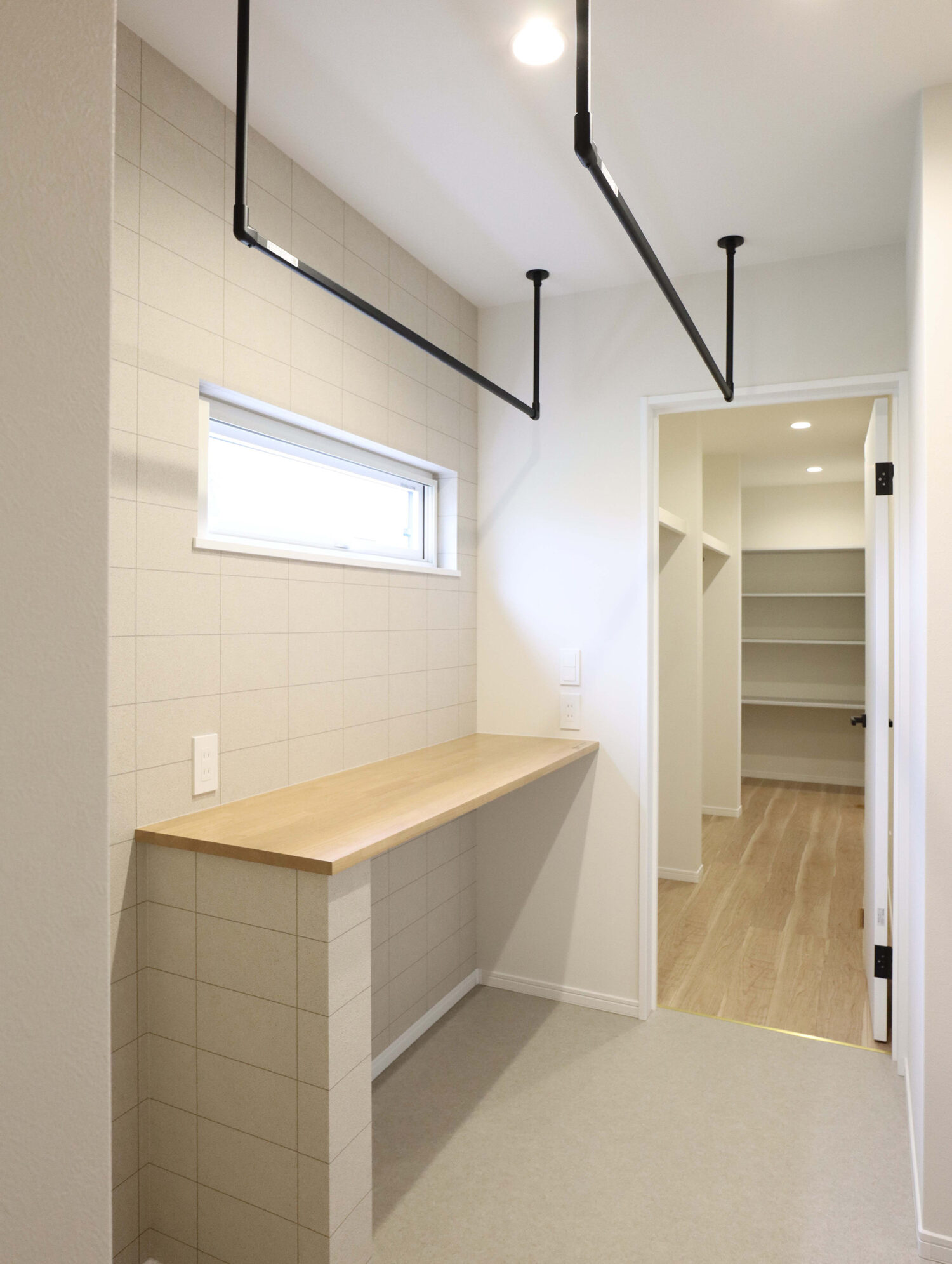 ランドリールームは洗う・干す・しまうが効率よくまとまっていて、家事ストレスを最小限にしてくれます。