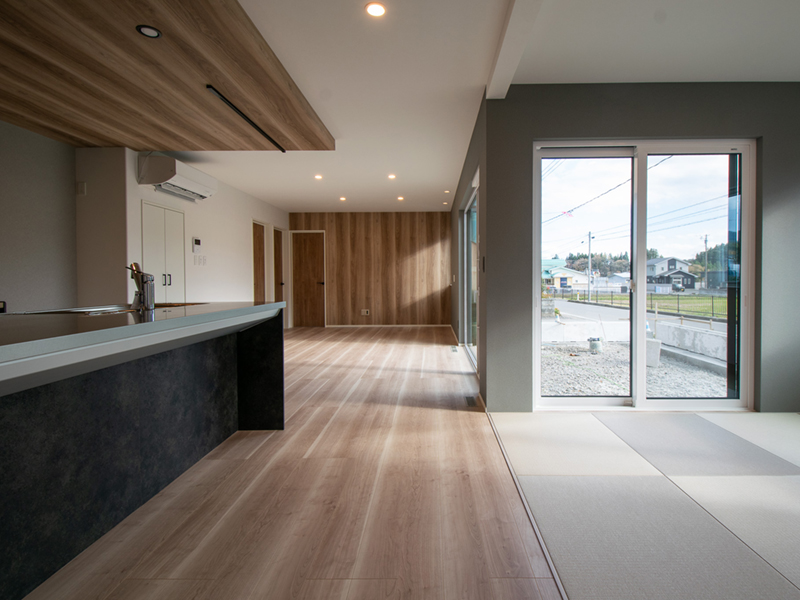 オープンキッチンの目の前にタタミコーナーがあり、料理をしながらお子さまのお昼寝を見守れる安心設計。