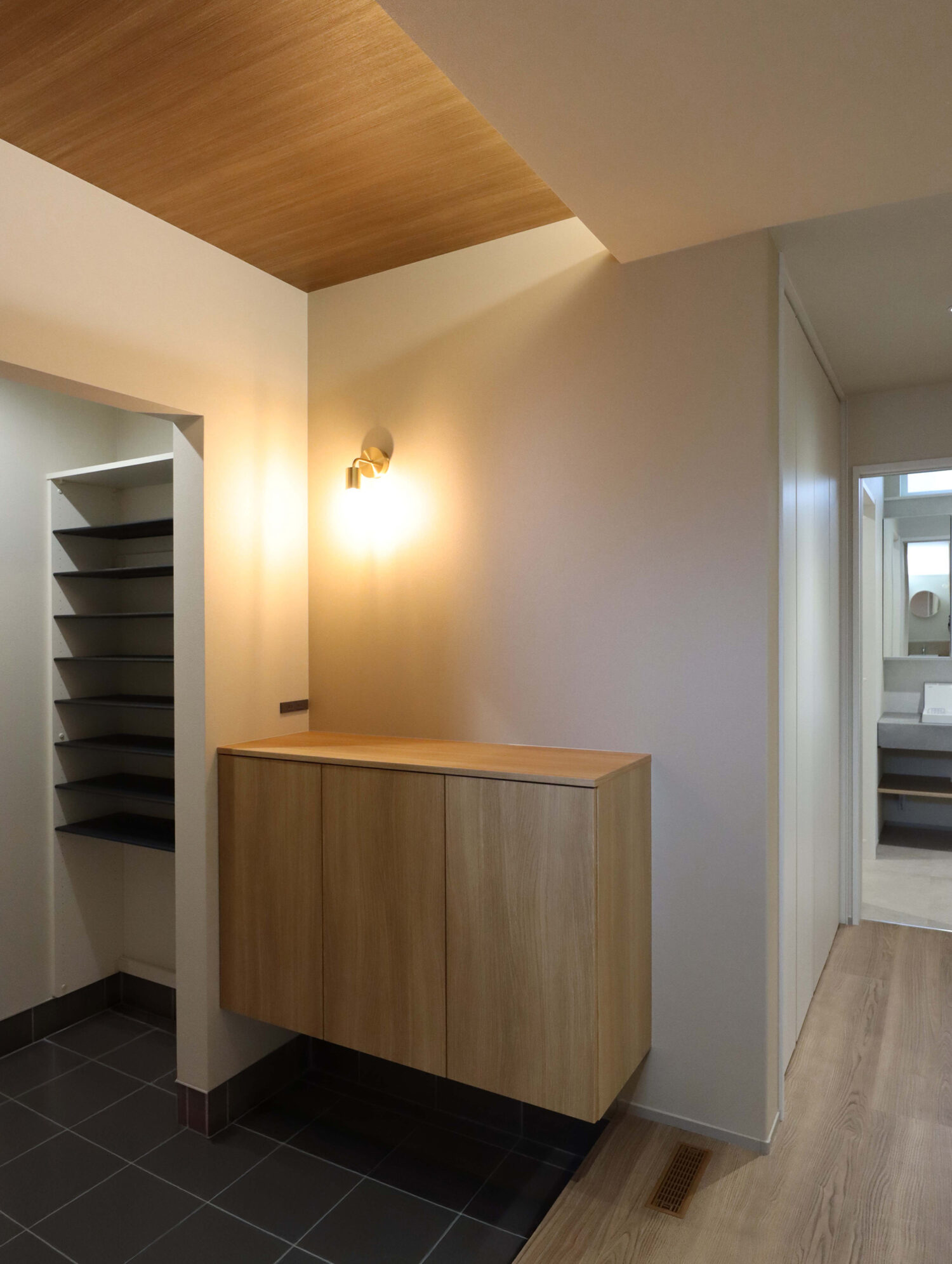 あたたかい照明が出迎えてくれる、「ただいま」が楽しみになる玄関です。
