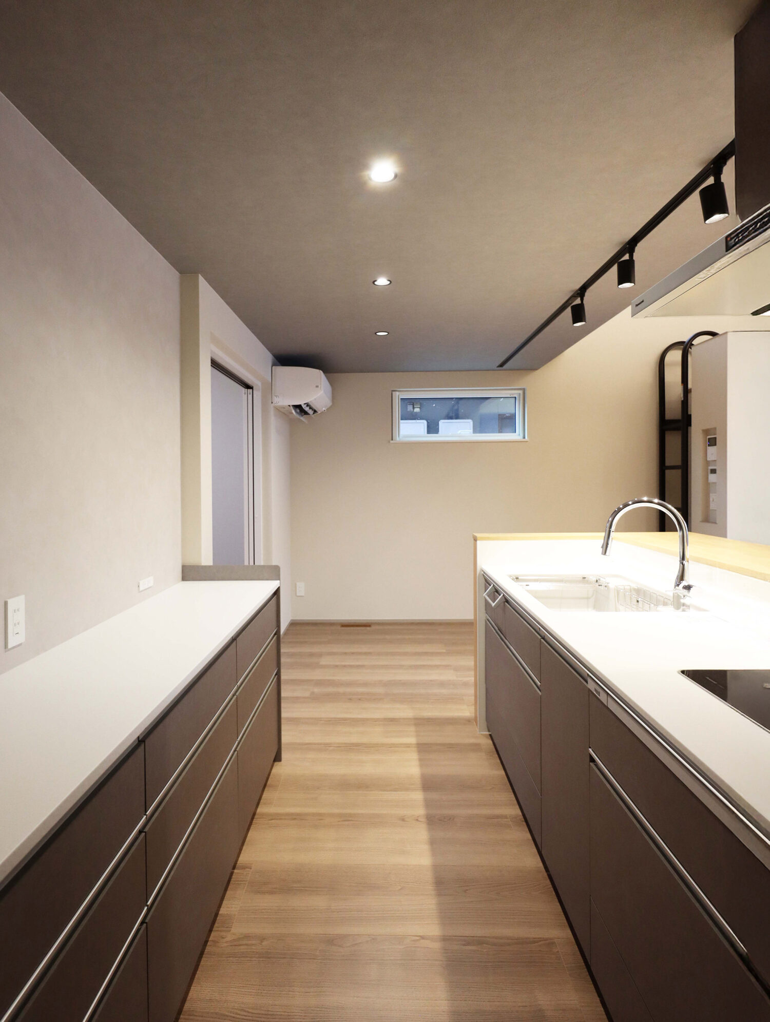 洗練された雰囲気のキッチン。IHのスイッチを収納できる、スタイリッシュさも兼ね備えています。