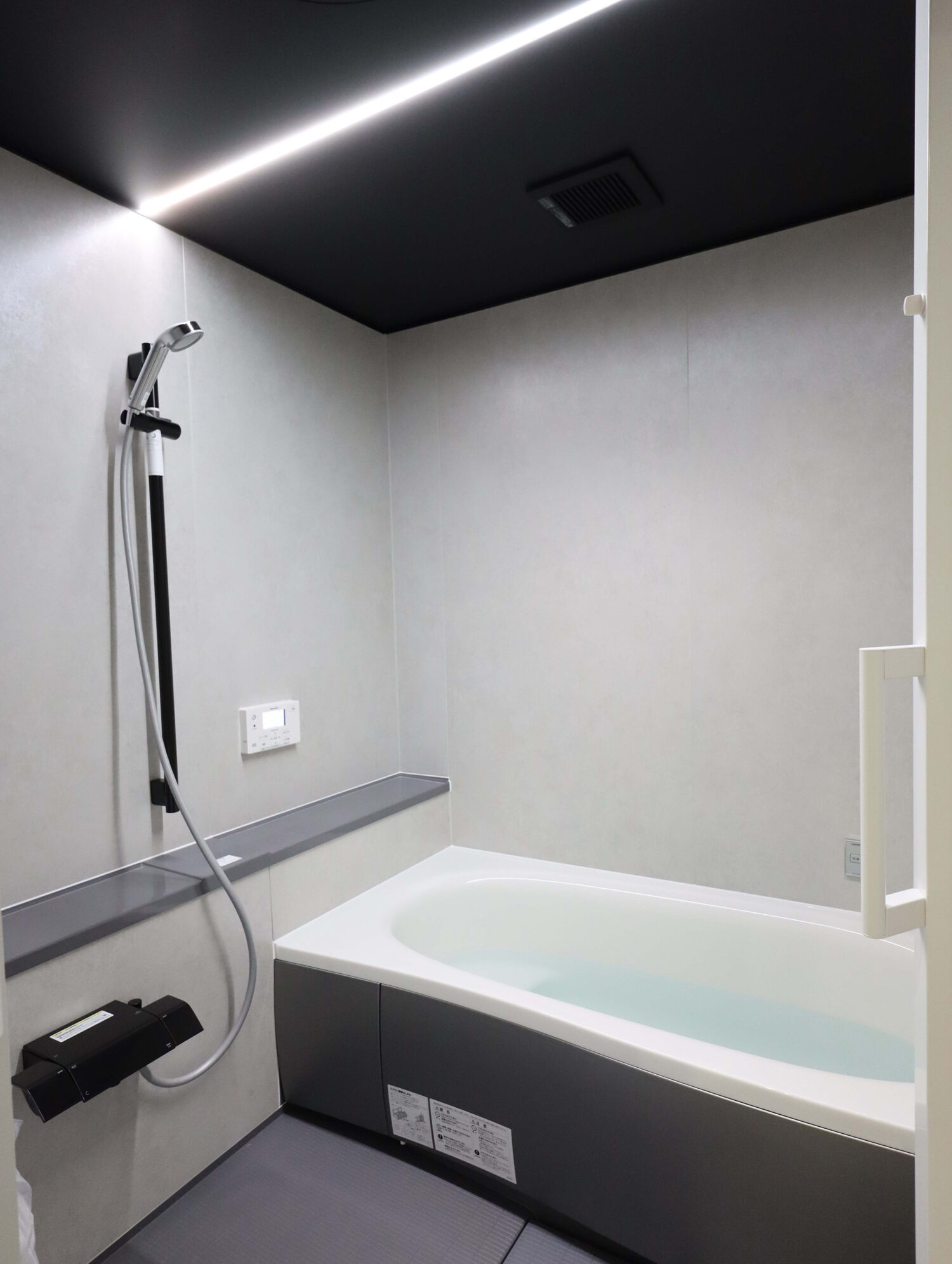 ライン照明でを採用し、スタイリッシュなバスルームに。