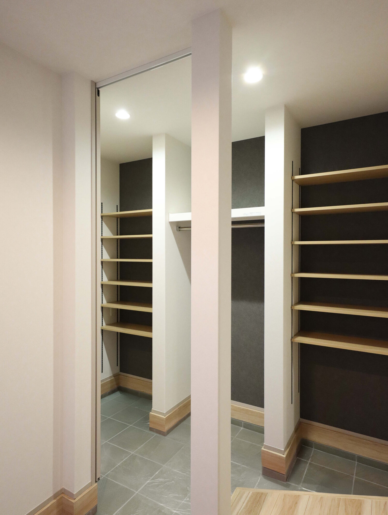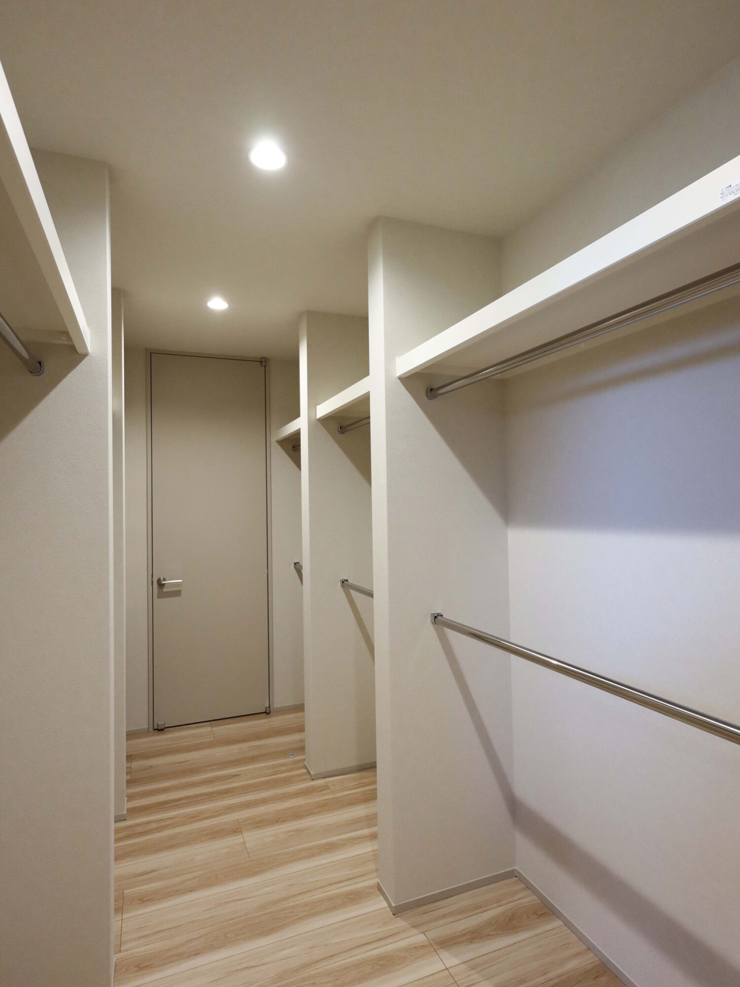 玄関から洗面に続くWIC。帰宅してすぐアウターをかけることができます。