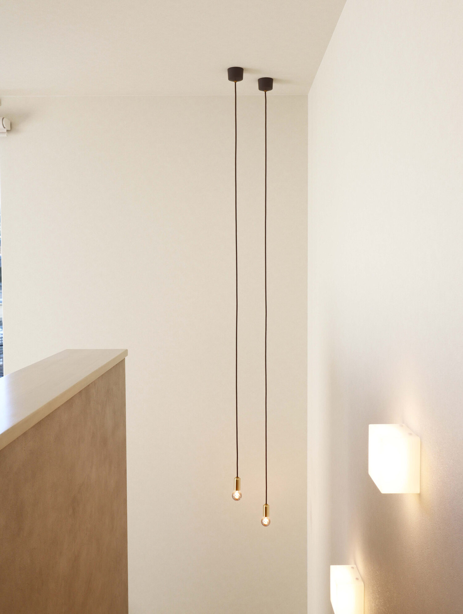 階段にはかわいらしい照明をあしらい、モダンな空間にさりげない遊び心をプラス。