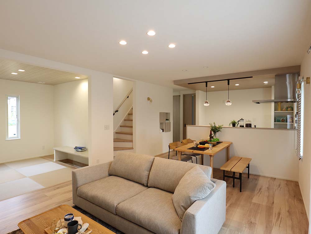 ママはキッチンから、リビングから、いつでもお子様たちの笑顔を見守りながら、安心して家事ができる「心地いい」設計です。