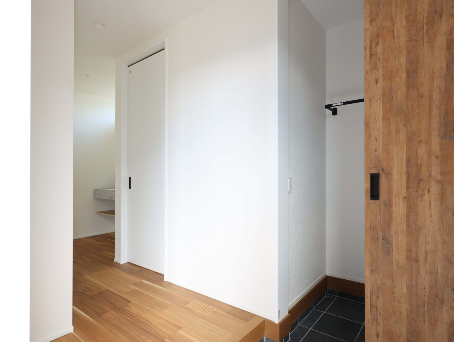 玄関収納は扉付きで生活感を隠せるように。その扉もヴィンテージを思わせる木調なら、おしゃれに演出してくれます。